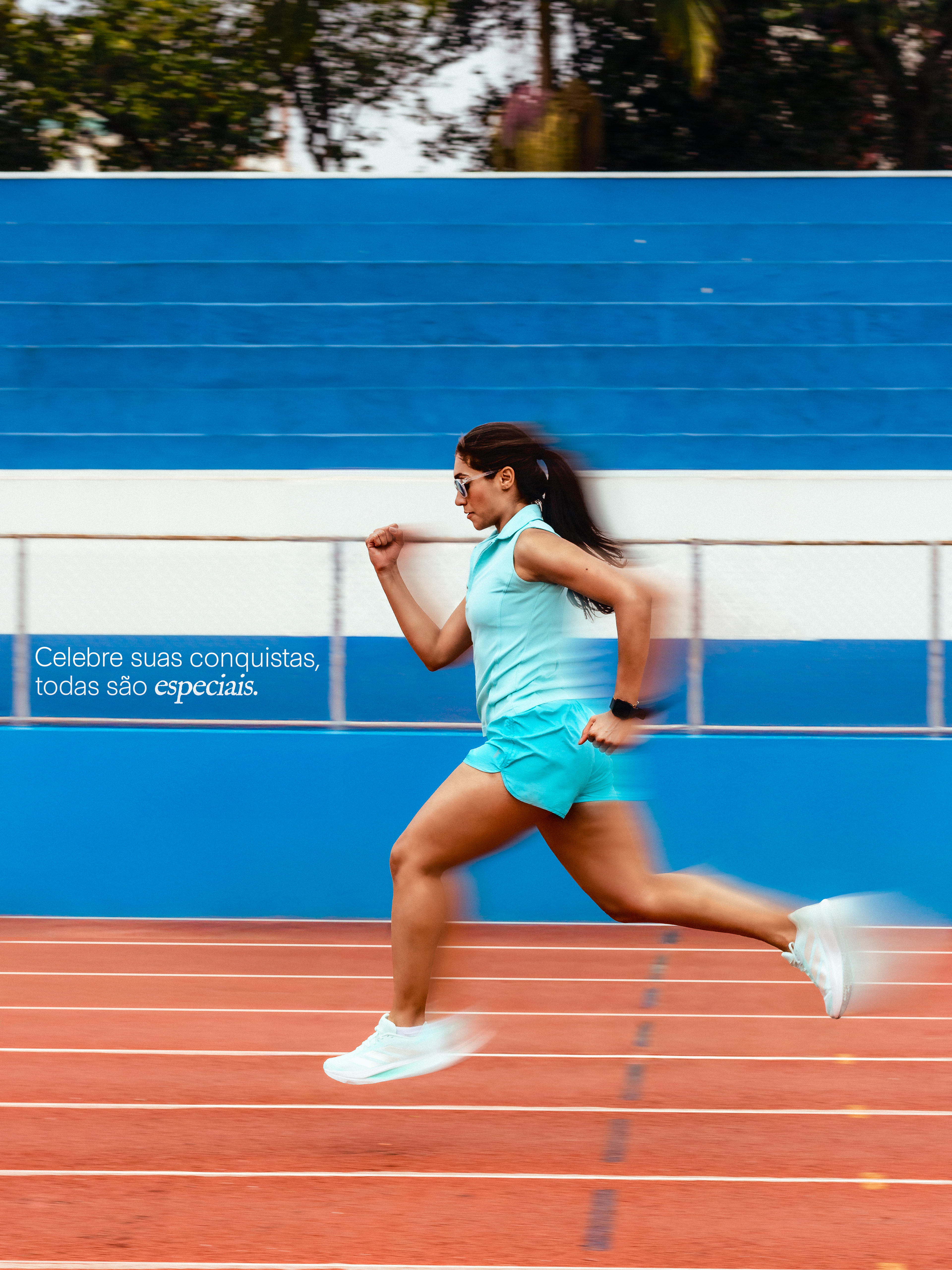 Para este projeto, mergulhamos na ideia de um editorial de moda esportiva, onde cada clique contou uma história de movimento, força e estilo. Nossa abordagem explorou a paleta de cores das vestimentas e do local de forma estratégica. A escolha do cenário (pista de corrida) aliada à captação de momentos reais e dinâmicos reforçou a autenticidade do lifestyle da Ana e valorizou o design das peças.